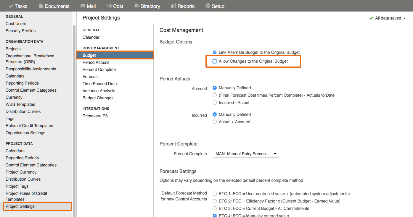 Preventing untracked changes by locking project budgets after it has been set up.