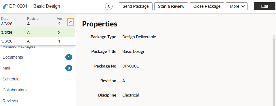 Unter Paketdetails können Sie auf den Titel eines Dokuments im Paket klicken, welches dann den Bildschirm mit den Dokumenteigenschaften für dieses Dokument öffnet.