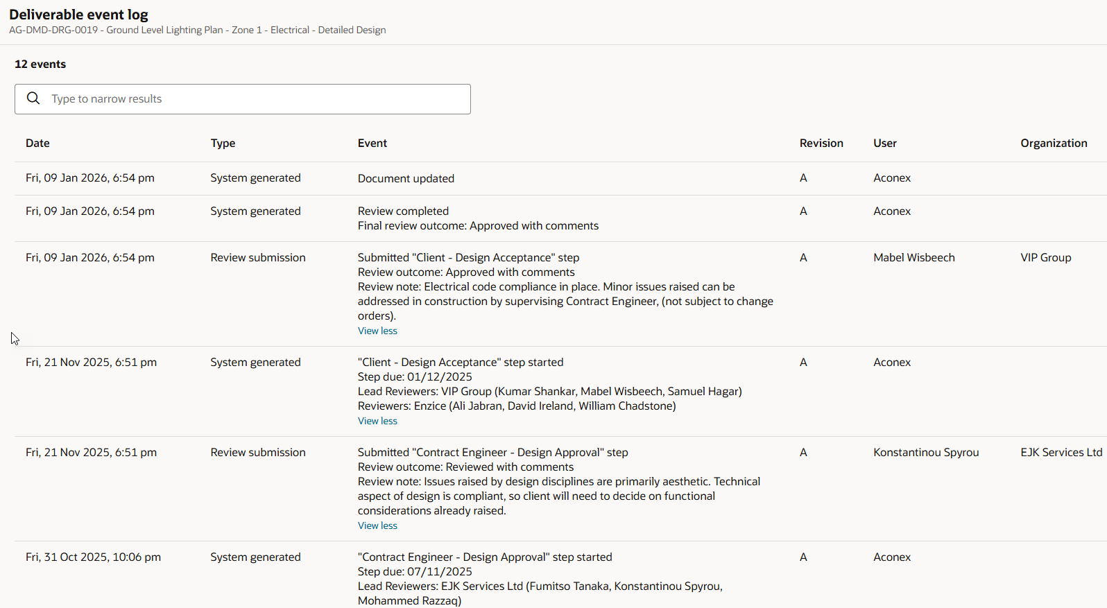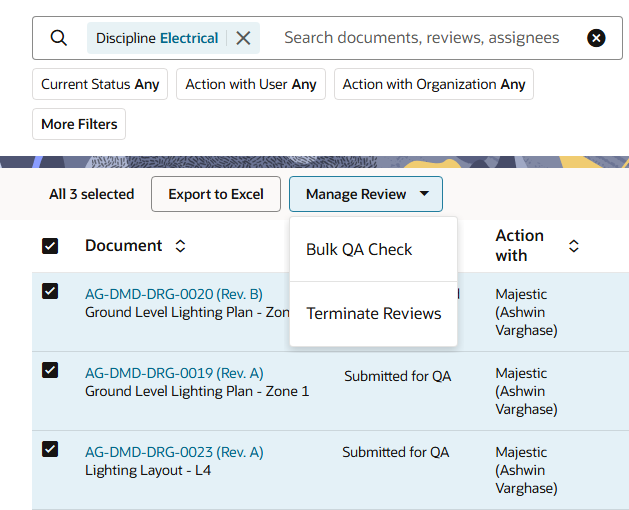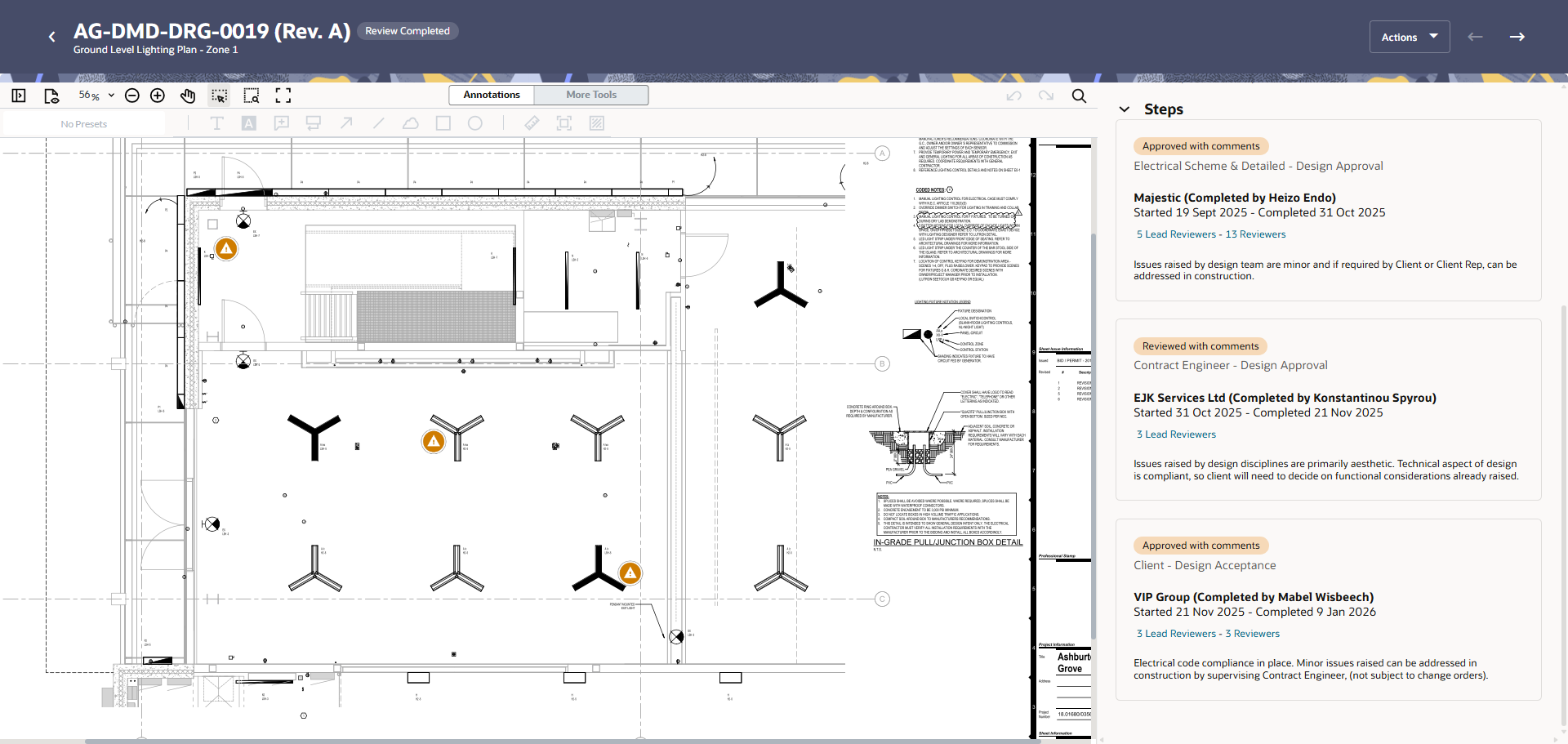 Each document is reviewed separately. In this example we'll look at what happens during the review of a single document - the ground level lighting plan drawing.