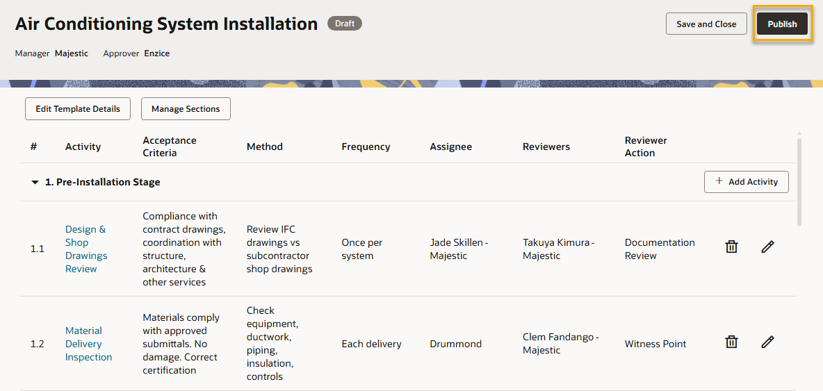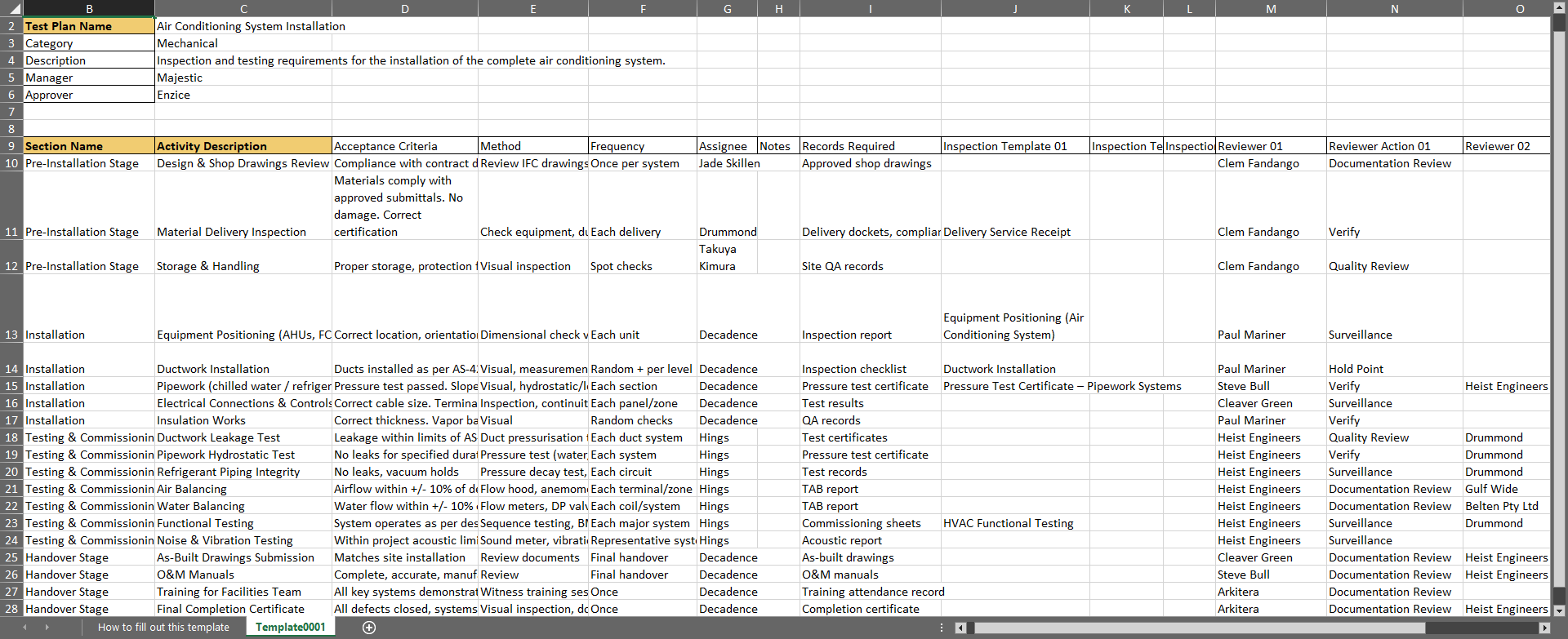 Once a test plan is created the assignees follow the guidelines provided in the template to complete their activities in the test plan. This ensures projects meet standards and specifications and the required evidence is thoroughly documented.