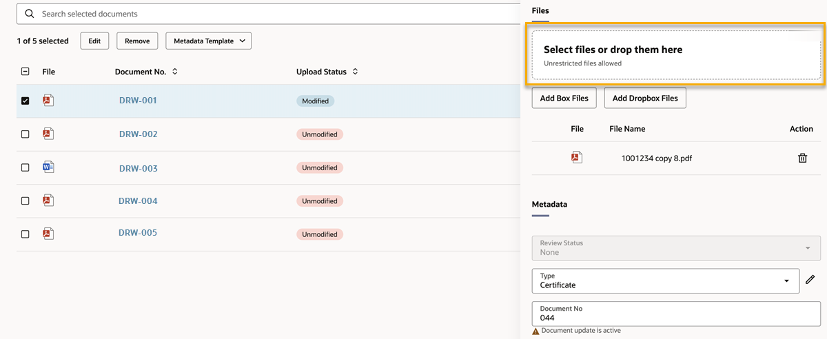 You can update documents one by one, or in bulk. In Aconex, updating a document is sometimes referred to as 'superseding'.