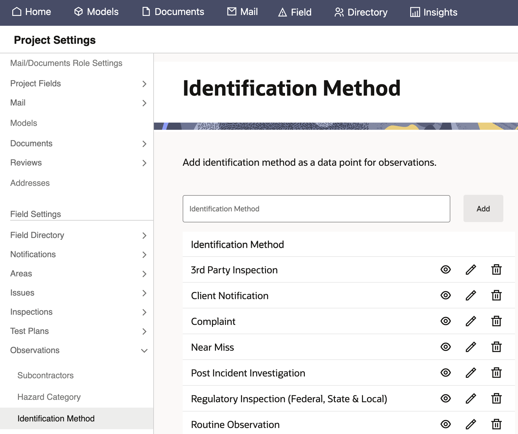 Observations in Aconex Field helps to reduce hazards and injuries on your jobsite and maintain a permanent record of safety. Inspectors can capture observations during routine safety inspections, or at any time a hazard or positive observation is identified.