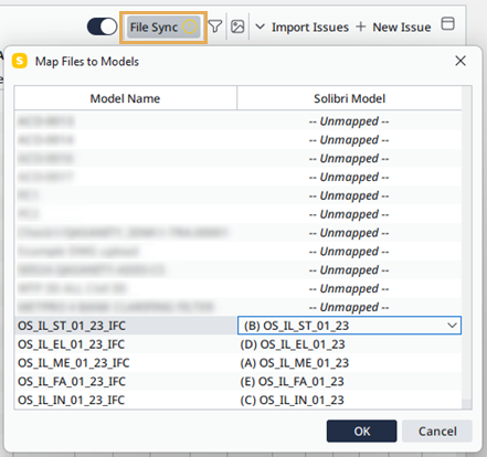 Use the File Sync feature in the BCF Live View panel to map the models that are open in Solibri to the models in Aconex.
