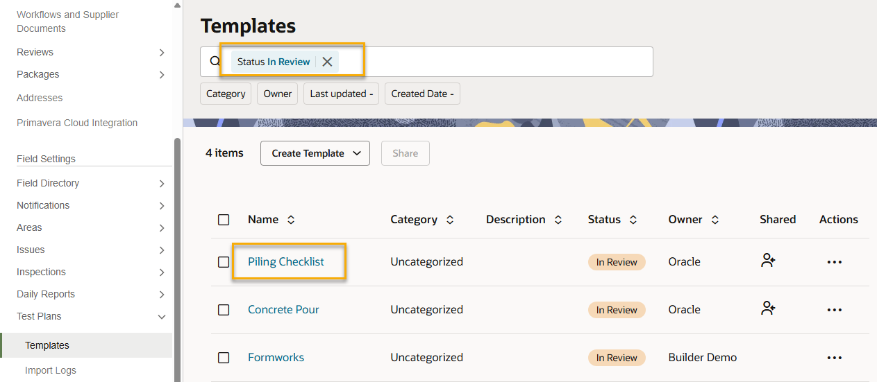 The template approval workflow ensures your project uses pre-approved templates for creating test plans. Approvals work both within and across organizations. The template can only be used for creating test plans once the Administrator publishes it.