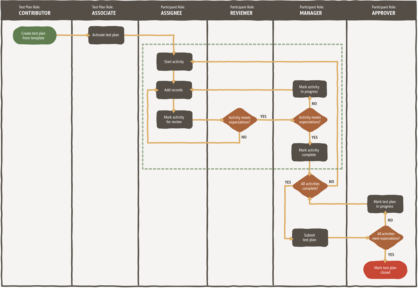 In addition the above, each test plan has its own set of participant roles. These are configured in the template and allows users to be assigned separate permissions to work on a specific test plan.