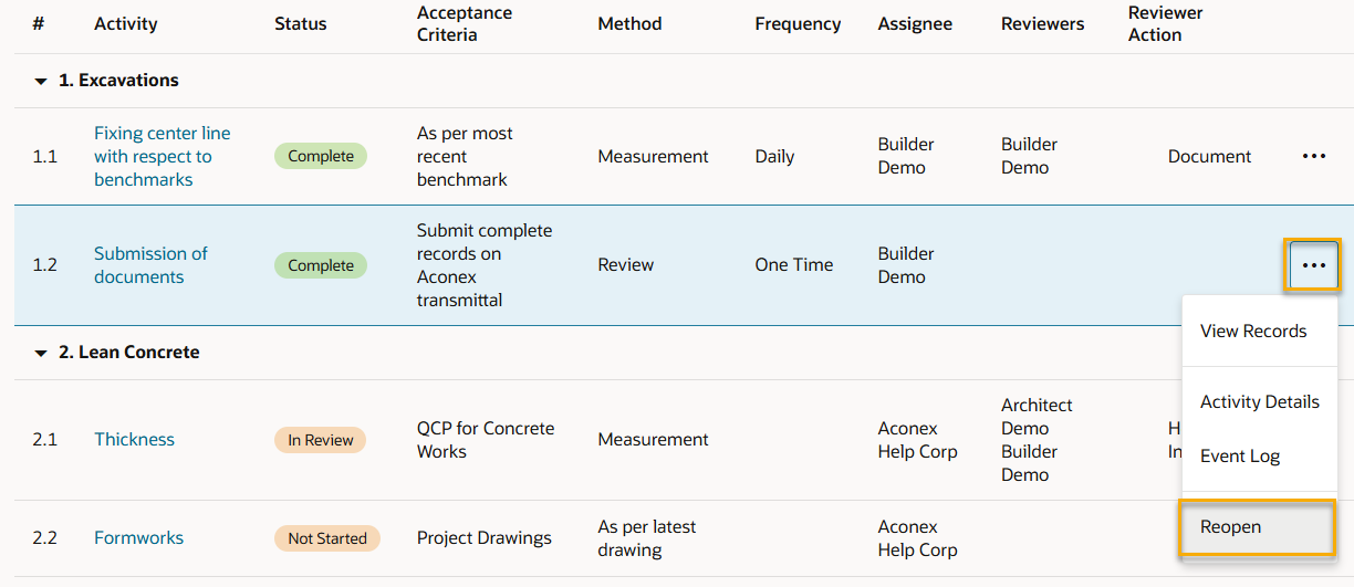 1. Click the three dots menu for the activity and select Reopen.