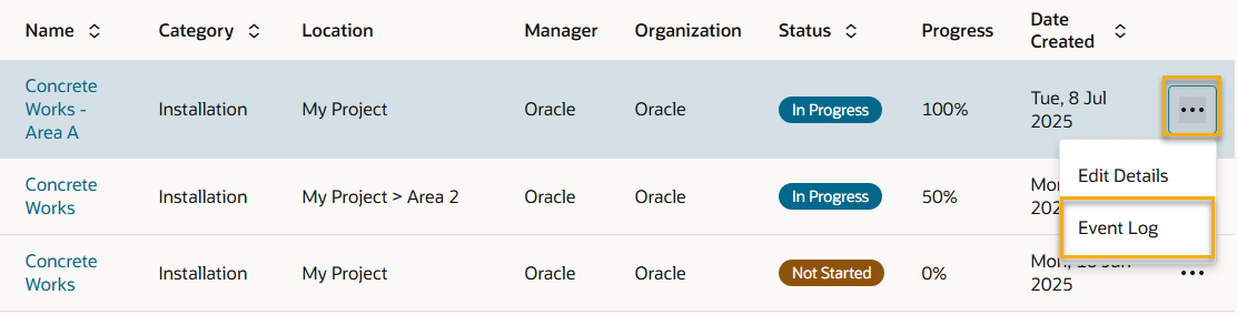 1. Click the three dots menu for a test plan and select Event Log. You can also access the event log from the test plan itself, under the three dots menu.