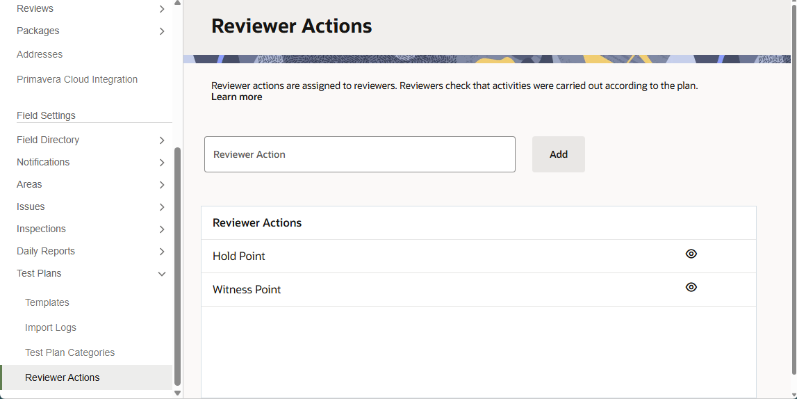 Setup reviewer actions such as Hold Points and Witness Points to ensure quality and compliance.
