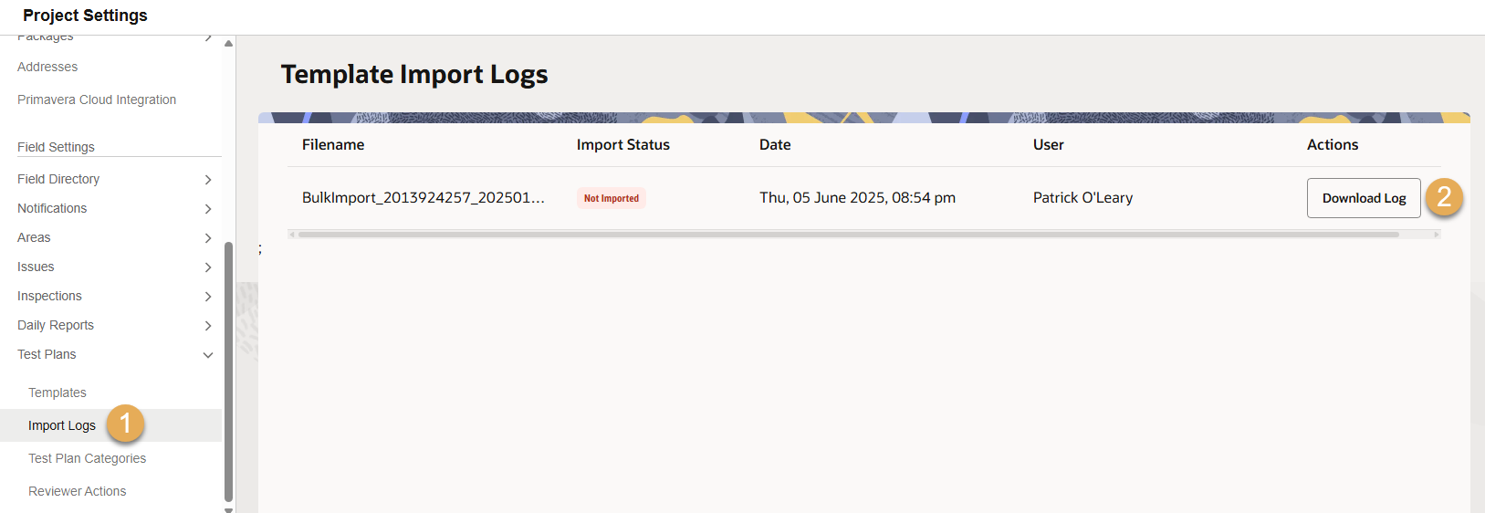 If a template failed to upload you can check the import logs to find out why. Then you can fix the template and try the import again. You can also see successful imports here, but they will not have a log file.