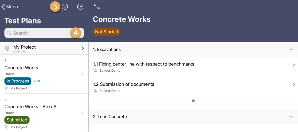 View and manage your test plans and activities directly from your mobile device, using Oracle Aconex Mobile. Data is seamlessly synced between mobile and the web applications to keep everyone updated. After a test plan has been activated, the participants in the test plan are required to follow the instructions in each activity and complete their work. Once all activities are completed, the test plan can be submitted and closed.
