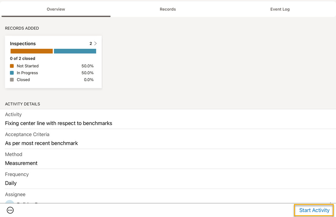 • Add records (inspections and attachments) to activities.