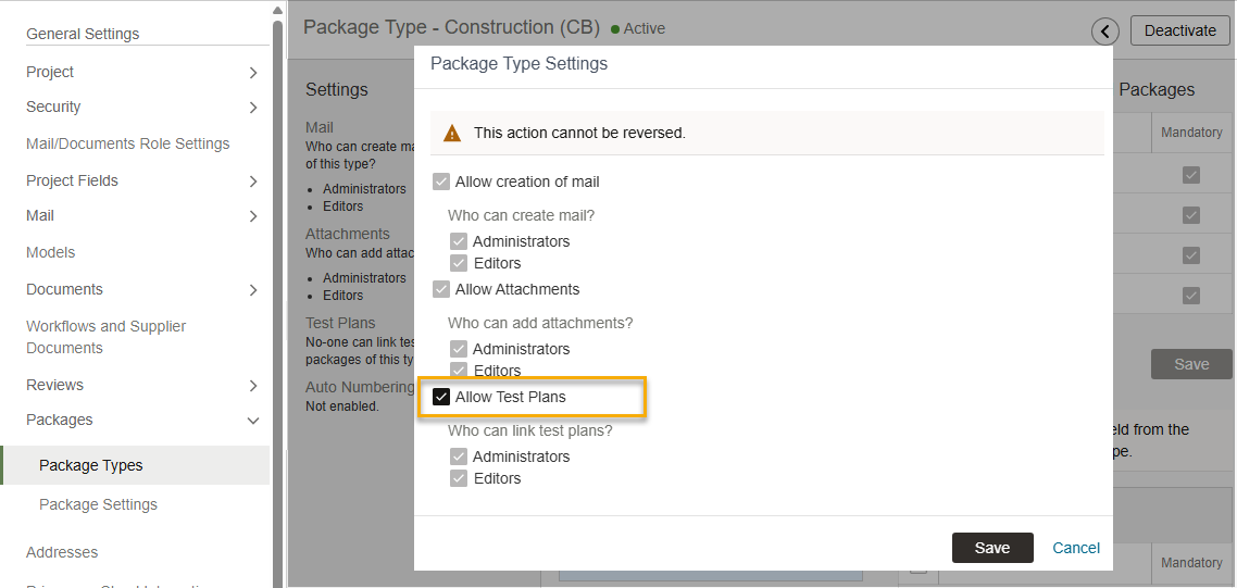 If your project is working with test plans, you can link them to your packages to track their progress. To save time to can access a test plan directly from the package and make updates or complete activities as required. This helps you track and manage a specific set of test plans within each package.