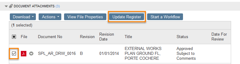 If your organization is not set to automatically update documents to the register, you can do it manually if you have permission.