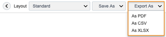 Exporting is done in two steps. First select Export As, then choose one of the following formats: