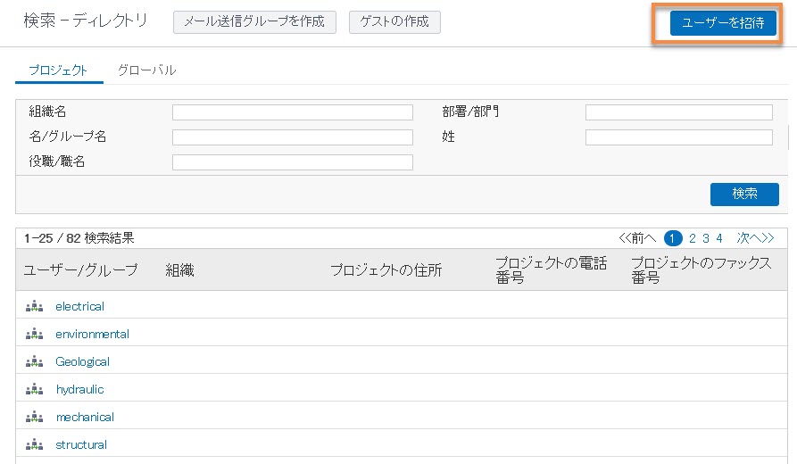 組織の管理者がアクセス許可を付与していれば、プロジェクトに文書を追加したり、メールを送信することができます。