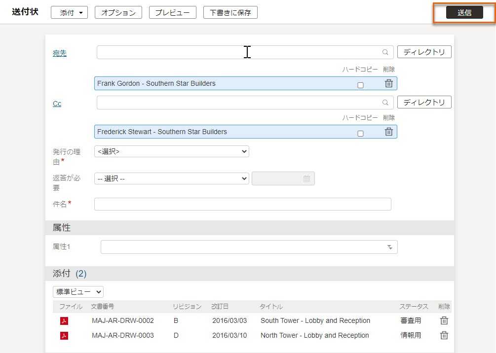 ファイルを他組織と共有する必要がある場合は、送付状を使用して共有することができます。