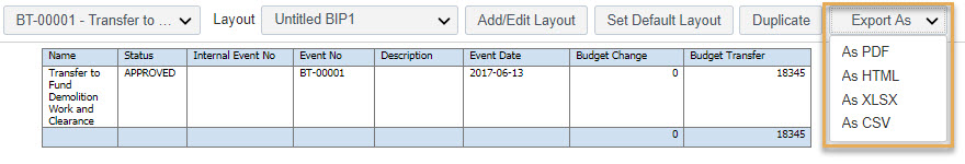 Exporting to CSV will export the entire data set defined in your Data Model, including filters. However, any filters set in your Layout will be ignored. Follow the steps below to export a layout to CSV.