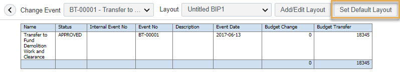 From the report preview page, click Set Default Layout. The currently selected layout will be set as default for the given report.