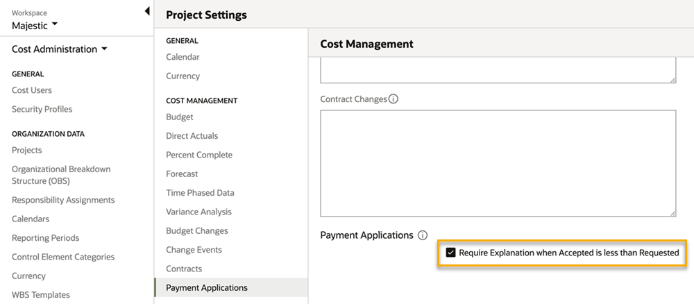 • The setting Require Explanation when Accepted is less than Requested is available at both the organization and project level.