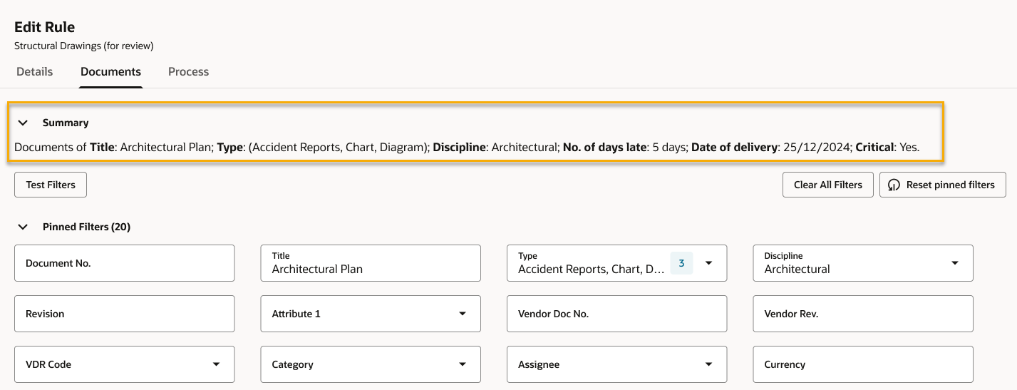 • You let us know the document filter criteria for a review rule was not easy to follow, especially if multiple filters are used.