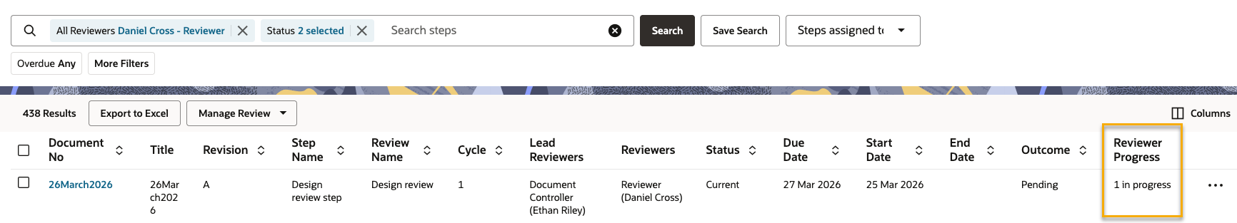 • The new Reviewer progress column shows how many steps are in progress or completed. You no longer need to go into each step to check this.