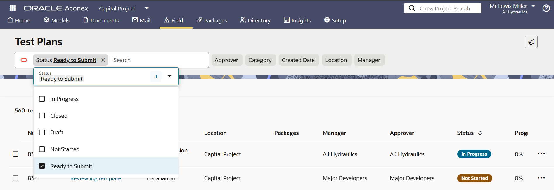 • Once all activities in a test plan have been completed, the test plan status will automatically change to Ready to Submit.