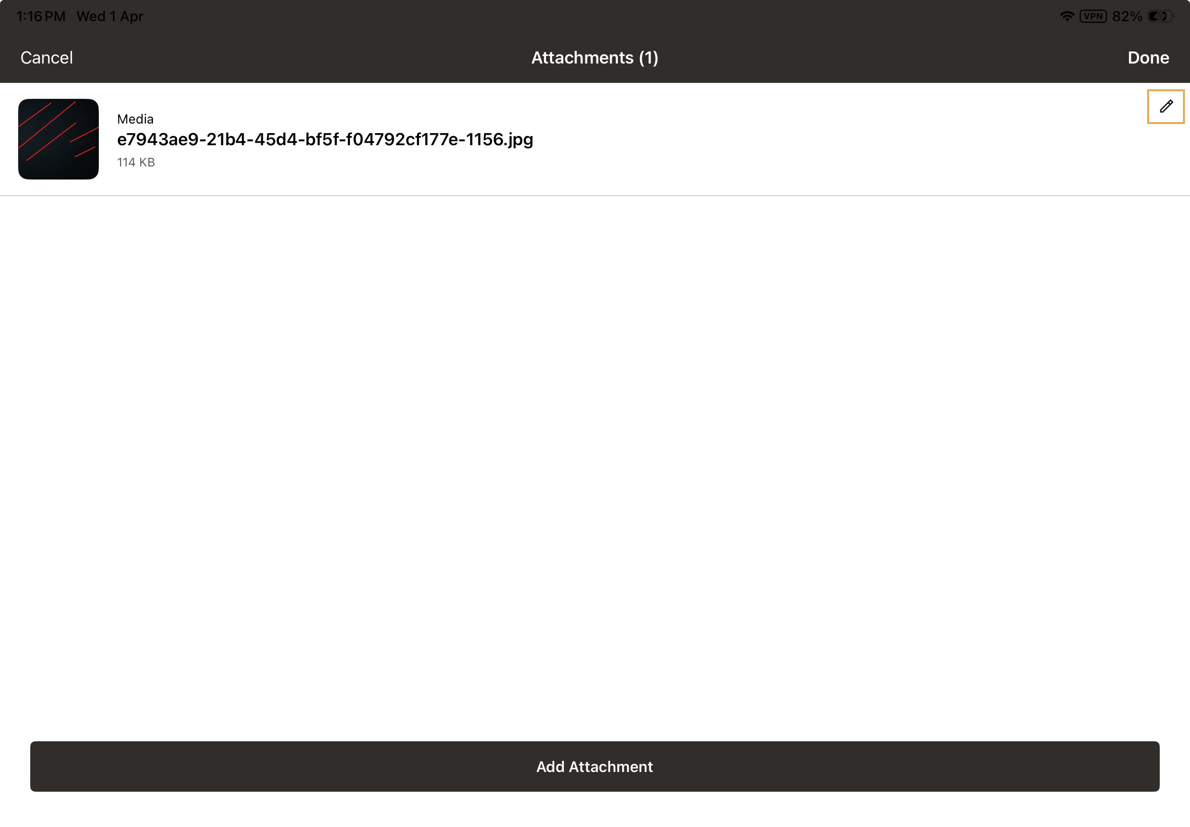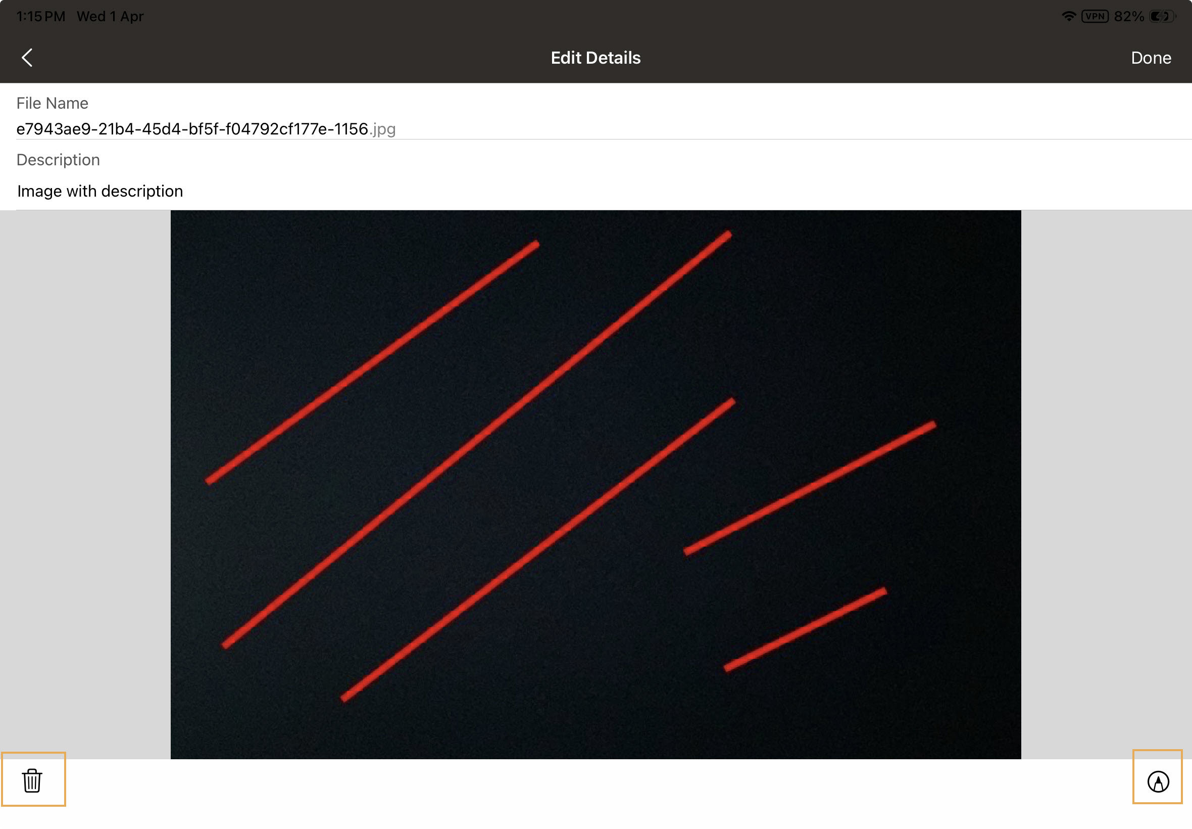 • Tap the Edit (pen) icon to update the filename or add an optional description (up to 255 characters).