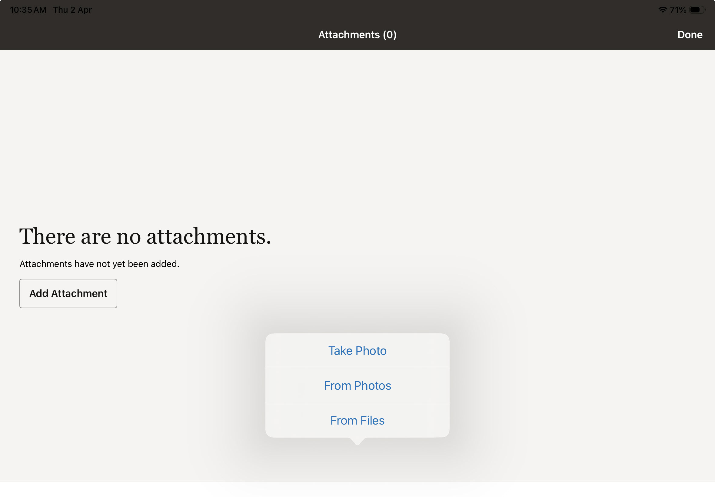 • Tap Attachments to add photos, documents, or other relevant files from your device, so it's clear what the problem is.