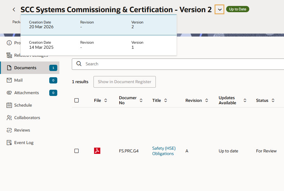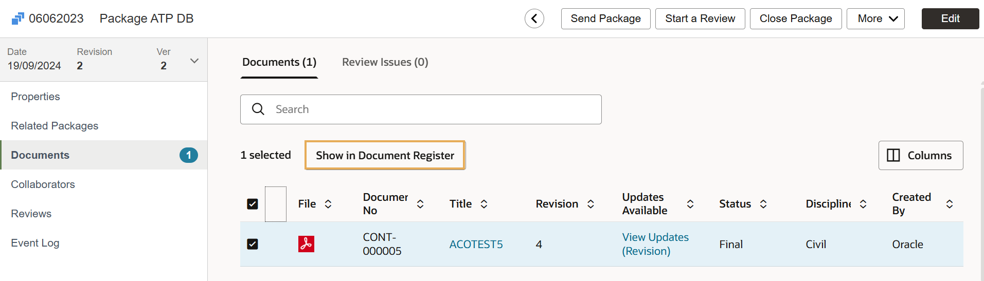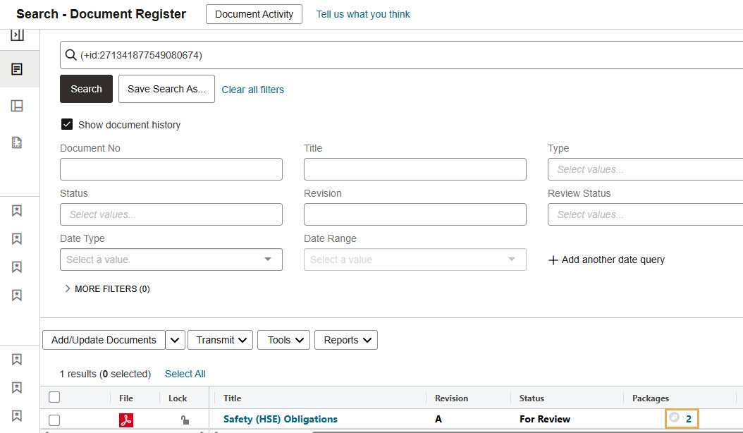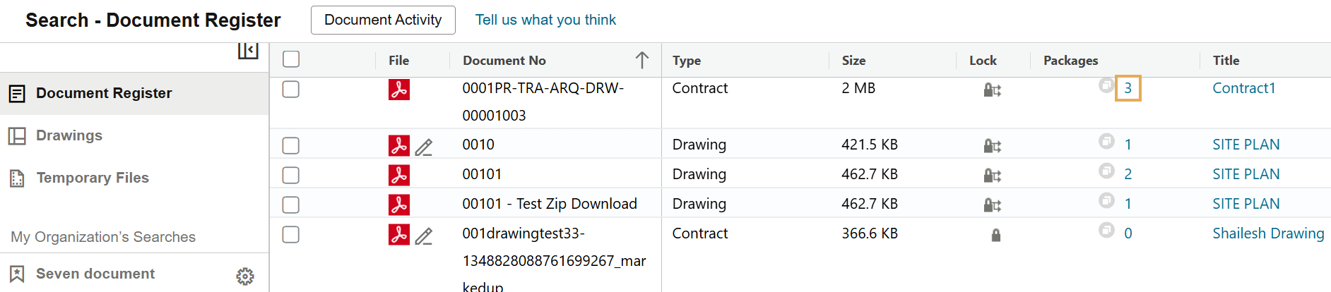 Search for the documents in the Document Register. If the document belongs to a package, the Packages column will indicate how many packages it belongs to.