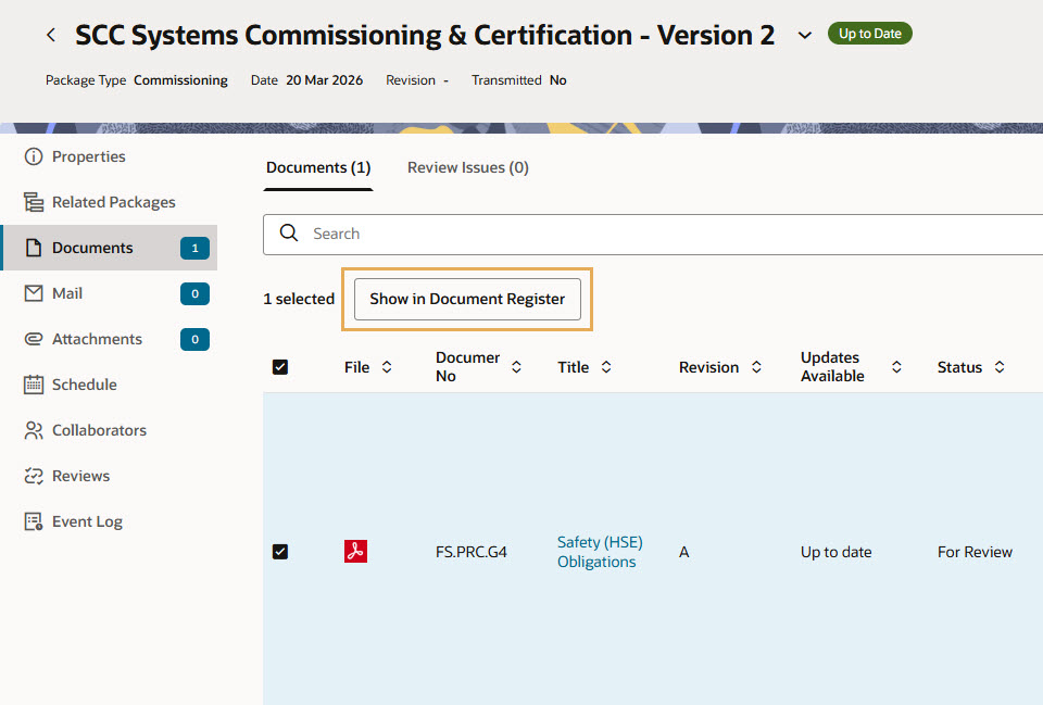 You can also select specific documents and show them in the Document Register. From there you can transmit or initiate a workflow.