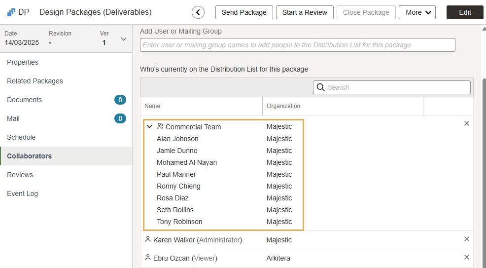 Create a list of people who will receive a package, and any updates to it, by default.