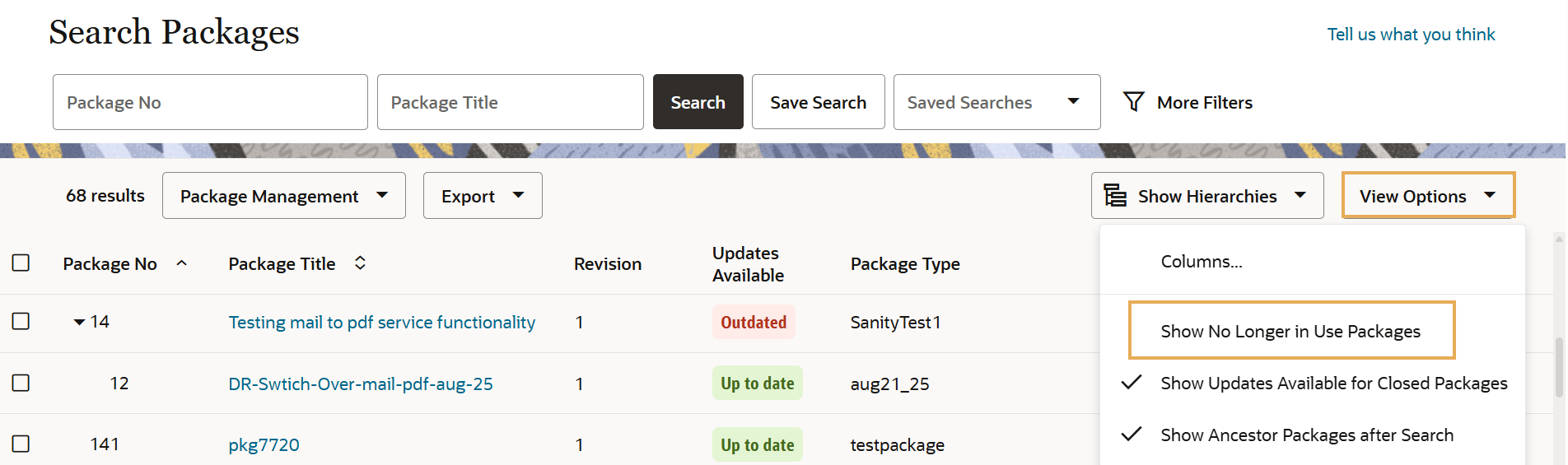If you mark a package as no longer in use, its state changes to No Longer In Use. And, by default, when you open the Package Register this type of package is not visible. If you want to see packages marked as no longer in use: