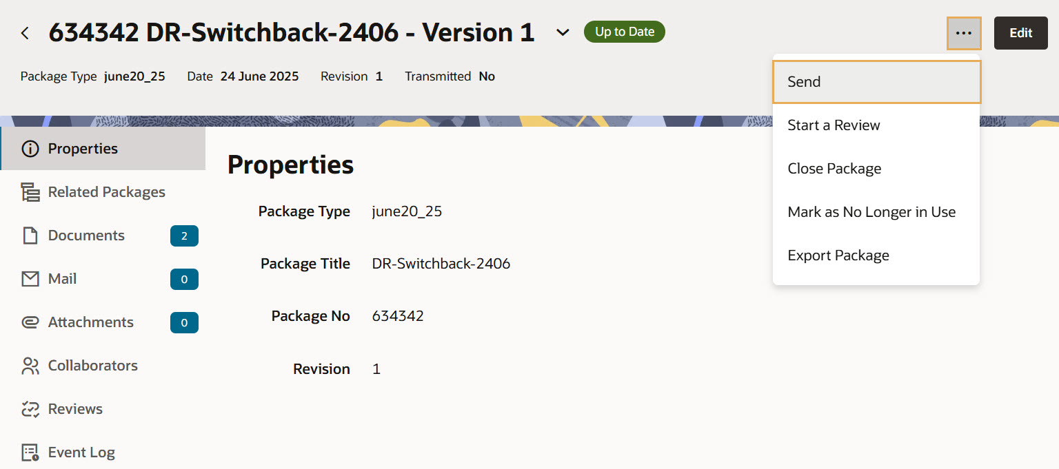 Your organization administrator controls who has the ability to transmit a package. If you don’t have permission, you won’t see a Send button.