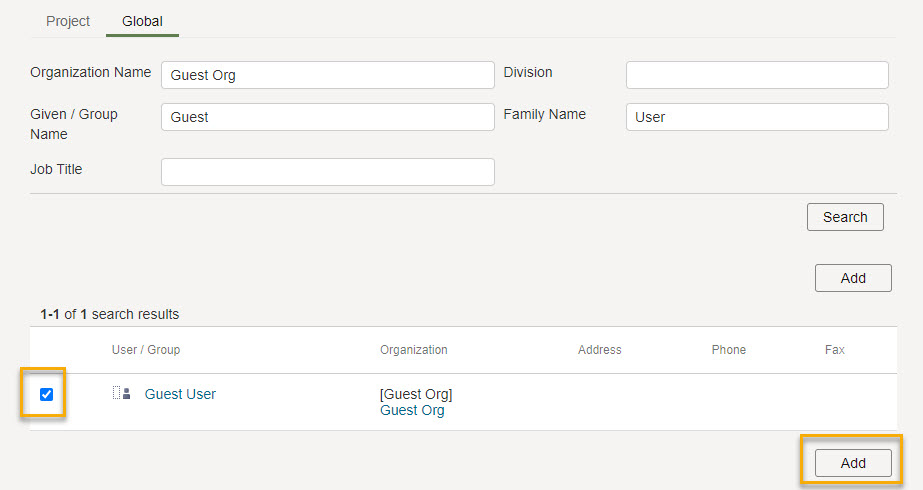 If you've searched both the project and the global directory and can't find the person listed you can create a guest user.