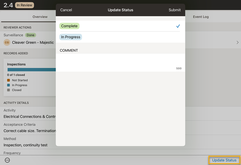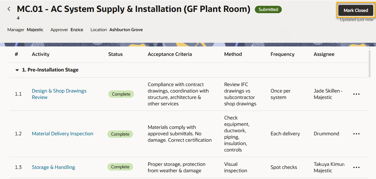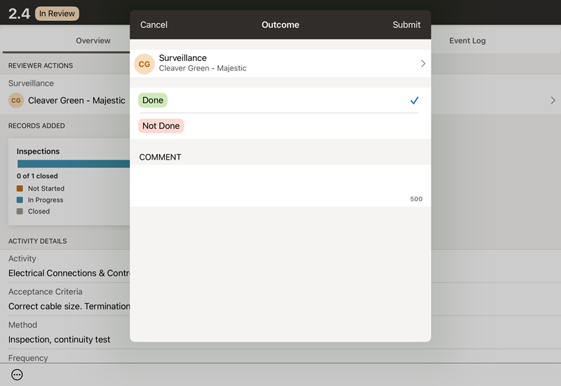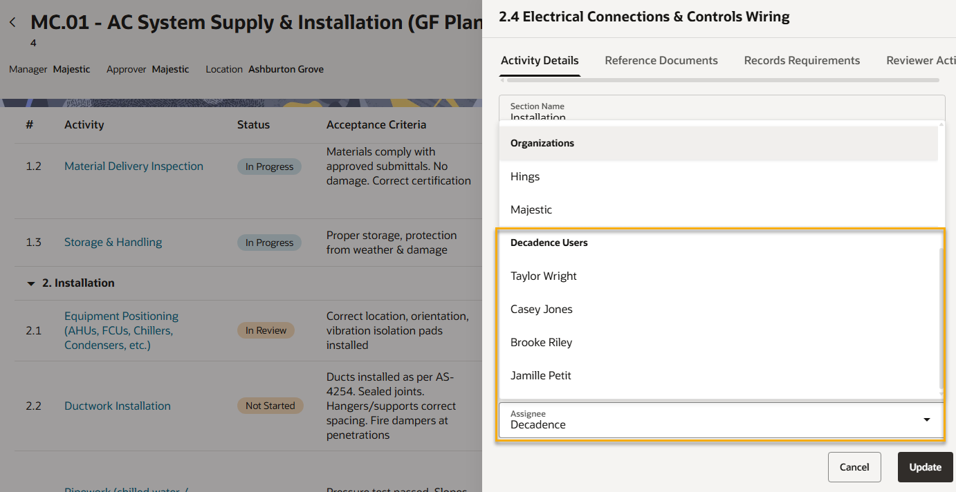 The consultant organization is set as the Reviewer of the activities. They check the work of the subcontractor and complete the reviewer actions, such as Hold Point or Witness Point.