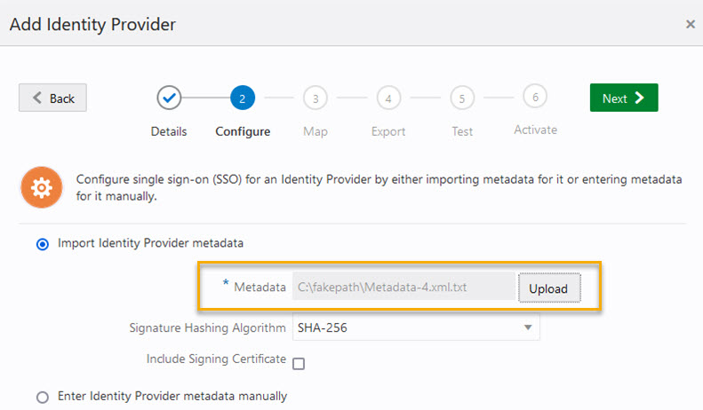 一旦您拥有联合元数据XML文件,IdP设置的第一阶段现已完成-您将在稍后返回完成此操作。您现在可以继续设置IDCS配置。