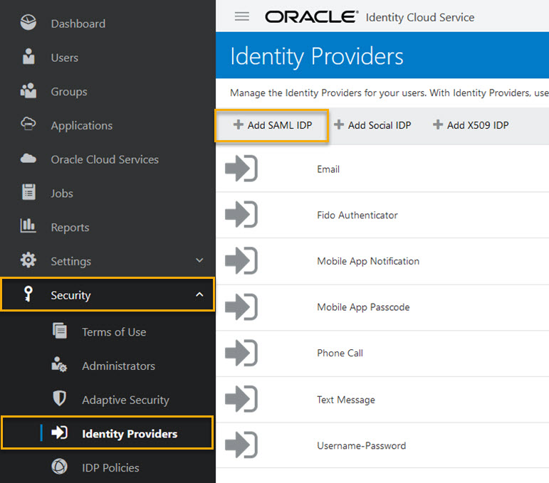 您的IDP通常是Microsoft Azure Active Directory等系统。您需要Oracle身份云服务(IDCS)公司帐户。
