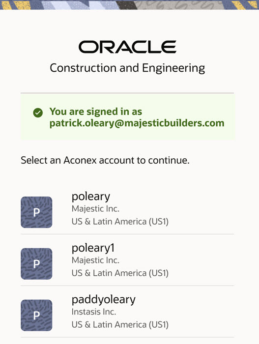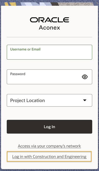 如果您使用旧版 SSO,请按照以下步骤通过您公司的网络登录 Oracle Aconex 移动版。 如果您不确定,请咨询您的组织管理员。