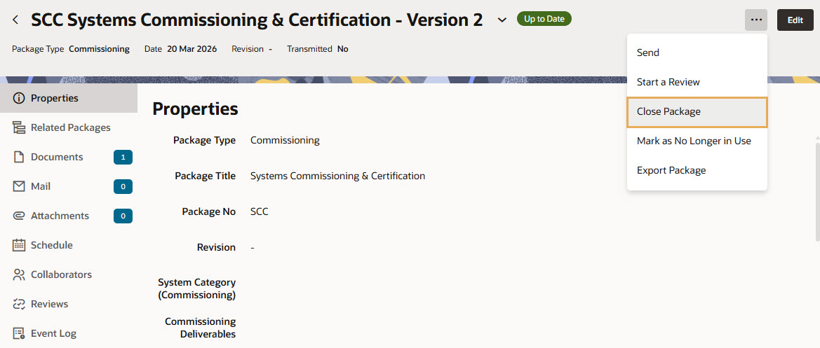 The following criteria must be met to close a package: