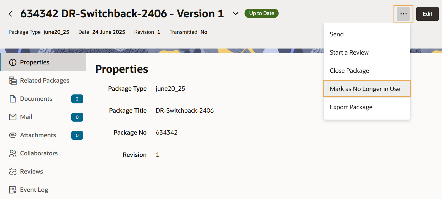 To get around these problems, you can use Mark as No longer in use, which hides them in the Package Register and stops them being used by anyone else. When you do this, they are hidden in the register, and all actions within the package are disabled. This means collaborators can no longer edit the package, nor can they distribute or review it.