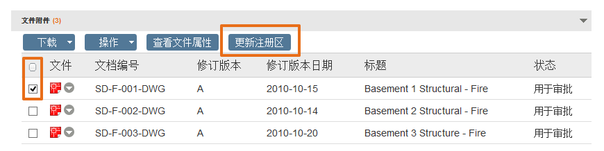 如果您的组织未被设置为自动上传文档到注册文档区,您可以从招投标传送中上传附件到注册文档区。